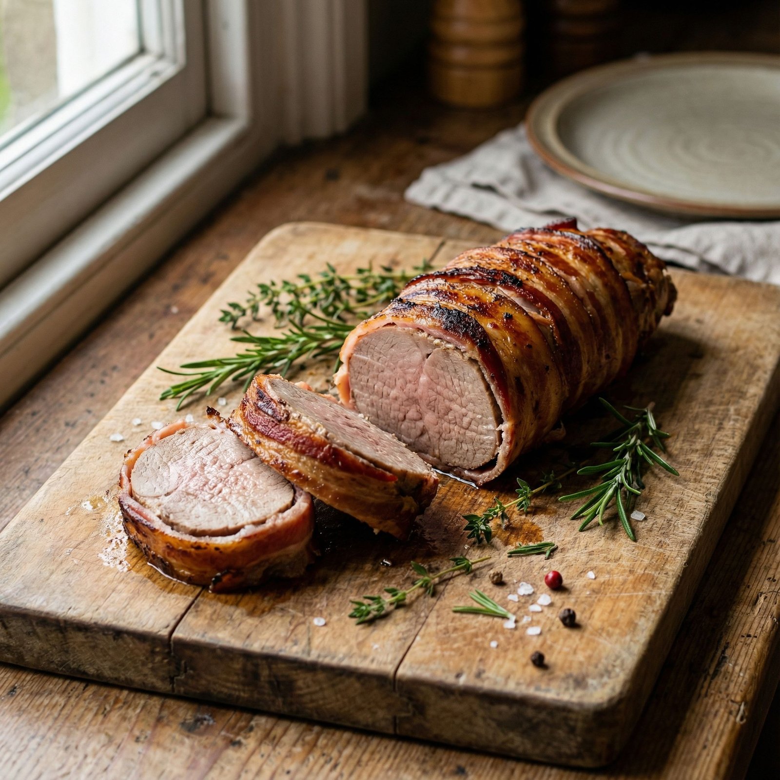 - 8–10 rashers Streaky bacon (Enough to wrap the tenderloin)