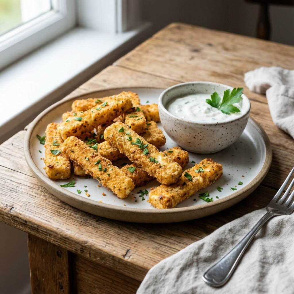 Air Fryer Halloumi Fries with Garlic Herb Dip – Crispy, Low-Carb Snack