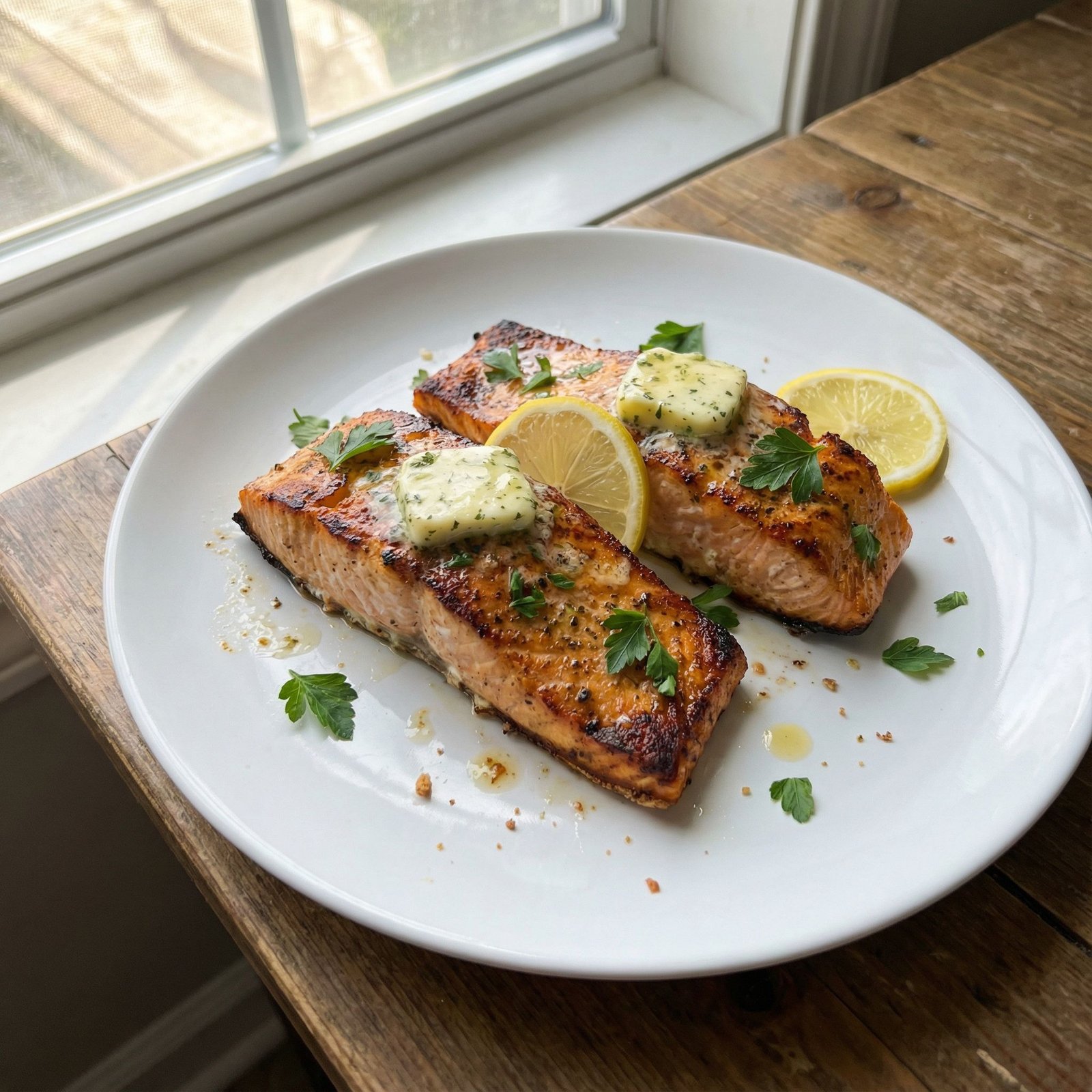 Air Fryer Salmon Fillets with Lemon Herb Butter – Quick & Juicy