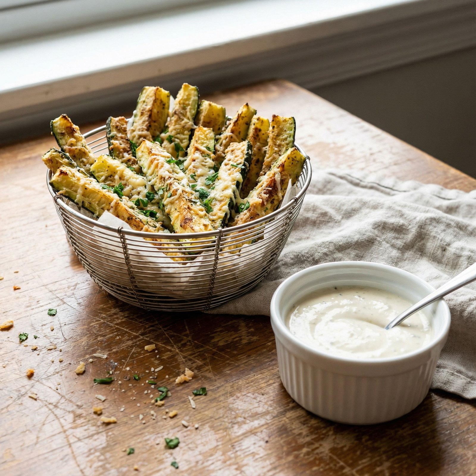 Crispy Air Fryer Zucchini Fries with Parmesan & Herbs